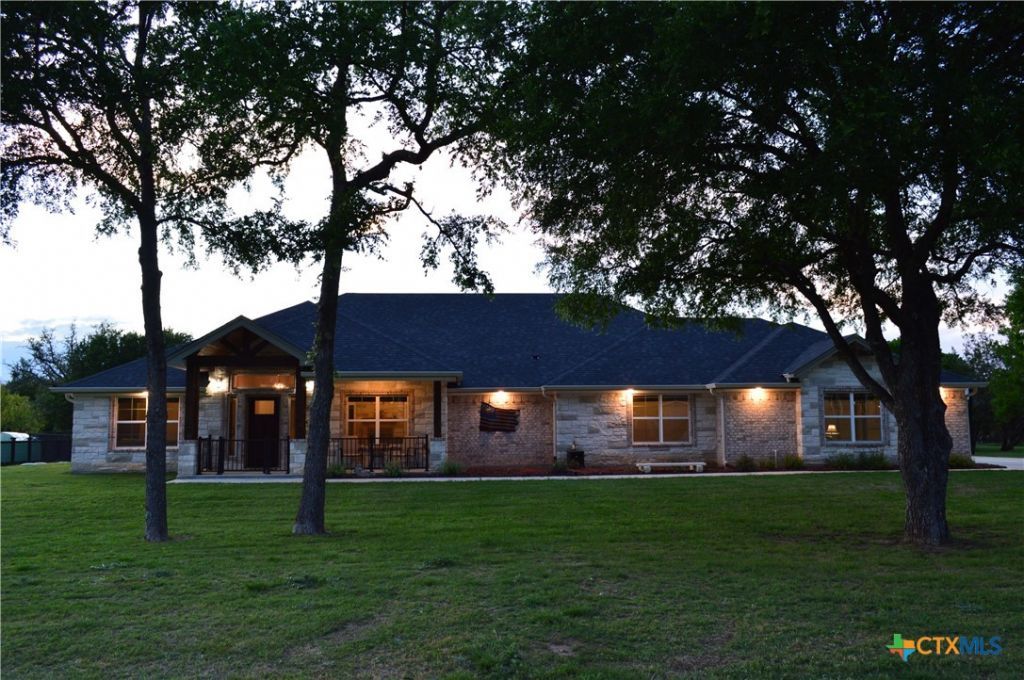 THIS FOUR SIDES BRICK HOME WITH STONE TRIM ON THE FRONT WAS BUILT IN 2022, IS LIKE NEW AND HIGHLY UPGRADED. 3018 SQUARE FEET HOME ON 1.096 ACRE FLAT LOT, FOUR BEDROOMS, THREE FULL BATHS, TWO LIVING AND TWO DINING AREAS, THREE CAR GARAGE, 20' X 30' SHOP WITH ATTACHED 20' X 25' CARPORT, TWO WATER HEATERS, WATER SOFTENER, GUTTERS, REFRIGERATOR, WASHER AND DRYER INCLUDED Come home to the country, yet be a short drive to Fort Hood and the surrounding areas and conveniences. It is about a one hour drive to Austin. The large front porch welcomes you to the upgraded entry/foyer. There are wood blinds throughout. The open floor plan keeps the cook with family and friends. The chef's dream kitchen is bright and airy with recessed lighting, pendant lighting, under-cabinet lighting, and features custom knotty alder cabinets, ornate granite countertops, an island with breakfast bar, stainless appliances, walk-in pantry, and reverse osmosis drinking water system. There is a formal dining room and an everyday dining area. The spacious family room has a cozy wood burning fireplace. The split floor plan allows privacy for the owners. The master bath has two adult-height vanities with granite countertops, two sinks, an oval soaker tub, separate shower, and private water closet. One of the bedrooms and full bath is separated. Buyer could add a hall door to create a mother-in-law suite. The laundry room and both secondary baths have granite countertops. A concrete driveway leads to the three car attached garage that has two garage door openers, and the driveway leads to the 20' X 30' insulated shop that has an attached 20' X 25' carport. There is a 34' covered patio and a detached outdoor covered entertaining area that has a fireplace and cabinets with refrigerator. The back yard has coated chain link fencing with three separate fenced areas, one of which is a garden/dog run. Utilities are provided by Hamilton County Electric Coop, Kempner Water, and NextLink high speed internet.