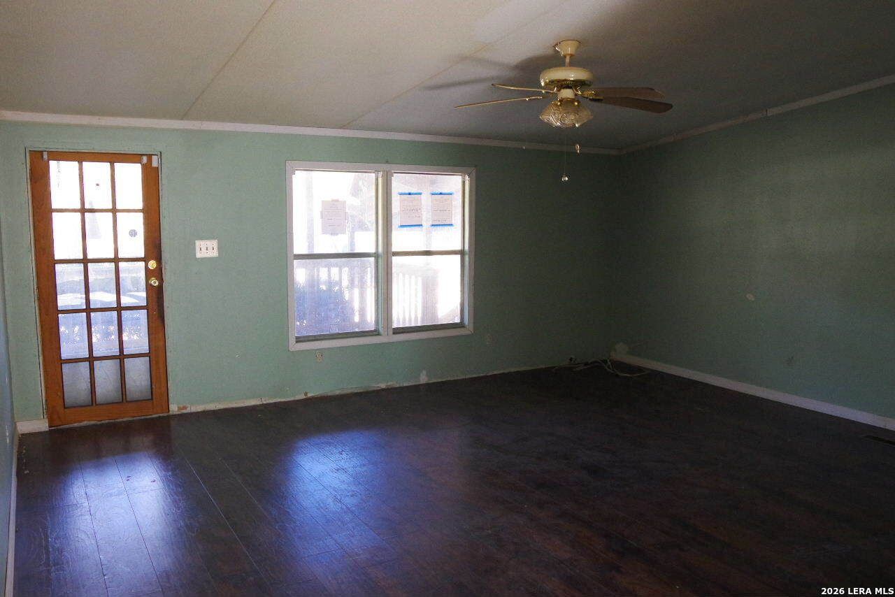 Here is your own piece of the Hill Country in Spring Branch! This open, airy 4 bedroom, 2 bath manufactured home provides over 2,000 square feet of living space. It offers a split master and study with large bathroom and a second bedroom on one side. In the center is a living room that leads to the kitchen/dining area with a view to the back yard. On the right side are two more bedrooms and a full bath. Sold as-is.