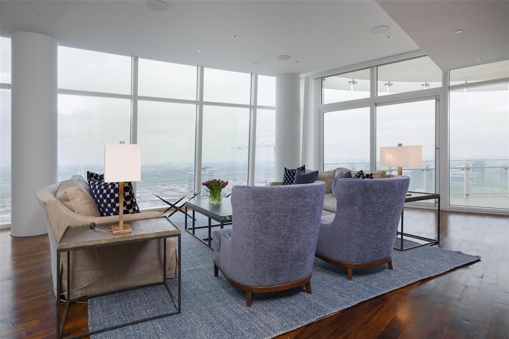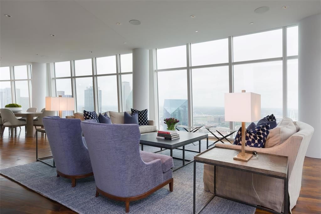Enjoy magnificent sunrises and sunsets from this stunning 39th floor home in iconic Museum Tower. Unparalleled panoramic views capture the dramatic skylines and landmarks of both Uptown and Downtown Dallas. This rare home occupies a spacious half floor with 10’ ceilings throughout and private elevator access into the home. Custom, luxurious finishes include walnut hardwood floors by French Brown, Phillip Jeffries wallpapers, Waterworks fixtures, Bardiglio and Palisandro marbles, and Blue Iceberg calcite. Kitchen features Gaggenau appliances including microwave, warming drawer, double ovens, separate steam oven, dual dishwashers, refrigerator-freezer, and wine refrigeration. Lutron HomeWorks lighting and automated shades. Control 4 media system and climate control throughout. Ideal location overlooking beautiful Klyde Warren Park, the Pritzker Prize-winning architecture of Dallas Arts District’s performance venues and museums, and numerous restaurants. Available fully furnished.