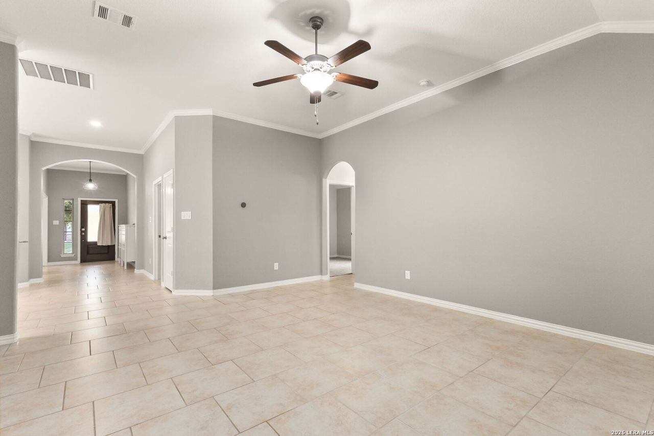 Beautifully designed 3-bedroom, 2-bath home featuring an open floor plan and high ceilings that create a bright, inviting atmosphere. The kitchen serves as the heart of the home, offering granite countertops, a large island, stylish tile backsplash, stainless steel appliances, and a spacious pantry-ideal for both everyday living and entertaining. Natural light fills the interior, highlighting the separate dining area and comfortable living spaces. The primary suite provides a relaxing retreat with a double vanity, separate shower, and ample space to unwind. Enjoy outdoor living with two covered patio areas, perfect for entertaining or quiet evenings at home. The backyard also includes a storage shed for added convenience. Located in a desirable community with access to a pool and clubhouse, this home is zoned to highly regarded schools and is just minutes from shopping, dining, and everyday amenities in New Braunfels.