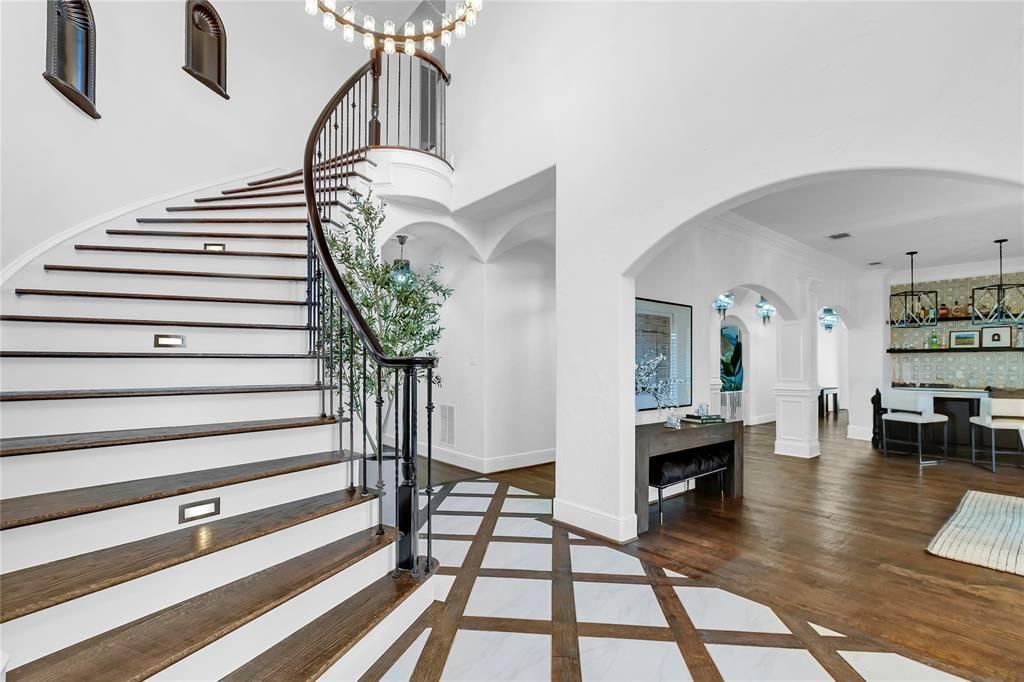 A rare opportunity to own this luxury estate that seamlessly blends elegance, comfort, and resort-level amenities; this extraordinary property in Prosper is truly one of a kind and located within highly sought-after Prosper ISD. Set behind a gated entrance on 2.9 private acres, this impressive 10,256 sqft. estate offers exceptional privacy and refined living. A grand entrance welcomes you into a thoughtfully designed home featuring soaring ceilings, exquisite craftsmanship, and expansive living spaces ideal for both everyday living and elevated entertaining. This home features 6 bedrooms, 6 full bathrooms, and 3 half bathrooms, and is equipped with Thermador and Frigidaire professional-grade appliances, creating a chef’s dream kitchen. The home is wired for surround sound throughout and includes a state-of-the-art movie theater room for an immersive entertainment experience. A separate home gym and private outdoor basketball court adds a rare lifestyle amenity, further enhancing the estate’s appeal. The primary suite serves as a private retreat, complete with heated floors in the primary bathroom, an in-shower tanning machine, sauna and spa-inspired finishes designed for ultimate relaxation. Step outside to a true oasis backyard, featuring a resort-style pool with grotto and waterfall, perfect for hosting or unwinding in complete seclusion. The front of the property is highlighted by a pond with a fountain, adding to the estate’s serene setting and exceptional curb appeal. Additional features include a 6-car garage, storm shelter, expansive grounds, and unmatched privacy throughout. Don’t miss this exceptional opportunity to own a rare premier luxury estate in Prosper ISD.
