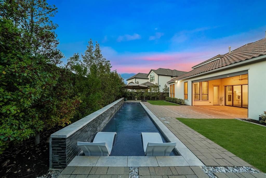 Thoughtfully designed for everyday living and elevated entertaining, this former model Edgestone residence offers a rare layout with nearly all bedrooms on the main level, creating a highly functional and livable floorplan. The heart of the home centers around an expansive, luxury kitchen, dining, and living space where daily life naturally unfolds. Anchored by Sub-Zero refrigeration, Wolf appliances, a large island, and custom built-ins, the kitchen opens seamlessly to a vaulted living room with wood beams, statement fireplace, and sliding glass doors overlooking the backyard. A true standout is the $70K custom home theater, delivering an immersive experience with projector, surround sound, and built-in media features. A dedicated study-music room with fireplace and custom detailing adds versatility, while plantation shutters throughout bring timeless style and privacy. Upstairs, a spacious game room with wet bar provides the perfect secondary entertainment space. Set on a larger, beautifully landscaped lot with mature trees, the outdoor space is designed for both relaxation and entertaining. The covered patio features a fireplace, motorized screen, and ample room for lounging. A generous pool and spa with water feature, along with grassy areas, creates a private backyard retreat ideal for gatherings. Additional highlights include epoxy-finished garages with EV charging, abundant storage, and seamless indoor-outdoor flow. Located in Frisco’s coveted Edgestone community, residents enjoy trails, parks, fitness amenities, resort-style community pool and close proximity to premier schools, shopping, dining, and the Dallas North Tollway.