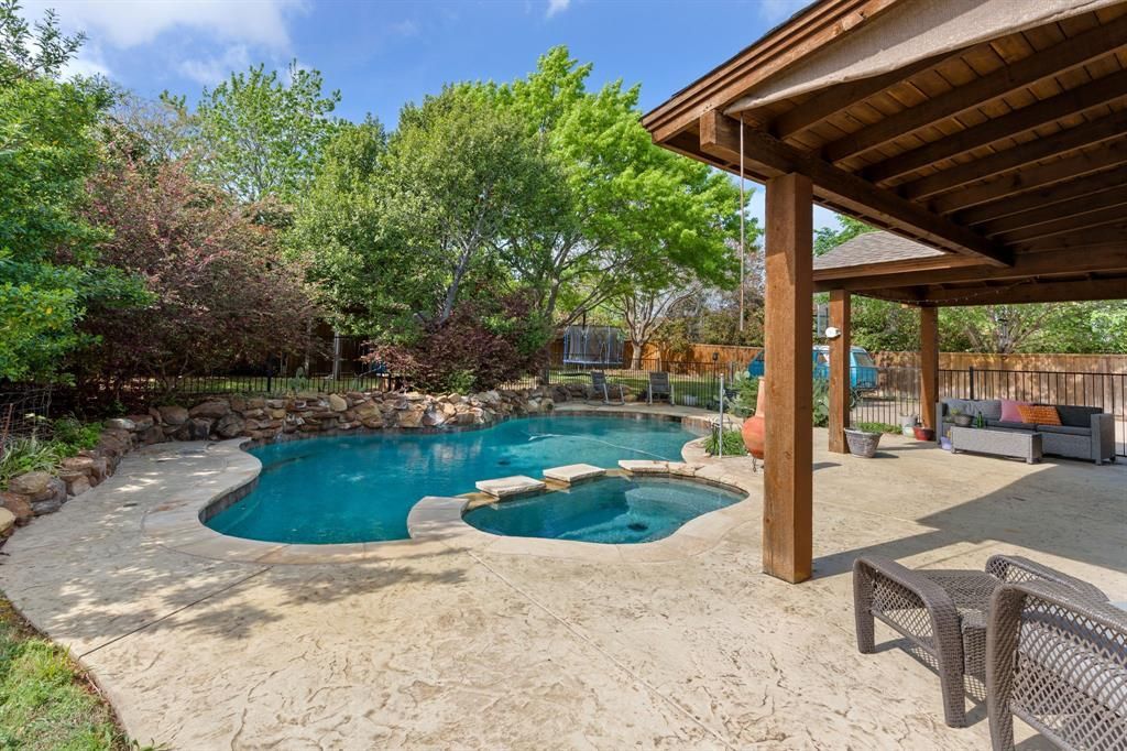 Welcome to 416 Love Bird Lane, a beautifully designed single story home in the heart of Murphy offering 2,742 square feet of versatile living space. This 4 bedroom, 2 bath home features a thoughtfully designed layout with a dedicated home office, formal dining room, and a spacious game room perfect for both everyday living and entertaining.The open concept kitchen and living area create a seamless flow, ideal for gatherings and family time. The kitchen overlooks the main living space, making it the true centerpiece of the home.Step outside to your private backyard retreat. This is where the property truly shines. Situated on an oversized 0.342 acre pie shaped lot, the backyard features a stunning pool and spa combo, a cedar covered patio, and plenty of space to relax or entertain. The private driveway with an electric gate provides added security and ample parking, a rare find in this area.Located in the highly sought after Wylie ISD, consistently ranked among the top school districts in Texas, this home also offers unbeatable convenience with close proximity to major shopping, dining, and entertainment options throughout Murphy, Wylie, and the surrounding areas.This is the perfect blend of space, functionality, and lifestyle. Dont miss your opportunity to call it home.