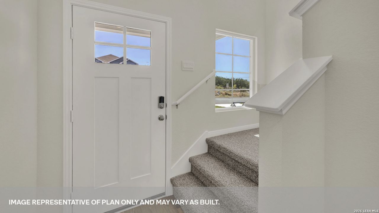 SUMMER ESTIMATED COMPLETION. EASY ACCESS TO I-35! OVERSIZED GARAGE. The Madison is our largest floorplan available at Paramount in Kyle, Texas. This beautiful two-story home features 5 bedrooms, 3 bathrooms, a gameroom, and 2 car garage across 2,492 square feet of modern living space. Our homes in Paramount feature our modern farmhouse exterior and the Madison plan is available in 2 exterior options. Entering the home from the covered front porch, youll cross the foyer to the open concept living space. The kitchen faces out to the dining room and family room, allowing for conversations to flow easily across the room as you make dinner and unwind from your day. Enjoy the 9 ceilings and natural light from the three rear windows. The kitchen features an island with undermount sink, quartz countertops, a pantry closet, 36" upper cabinets, and stainless-steel appliances. A secondary bedroom and full bathroom are located off the kitchen, perfect for your guests or any family member that need their own space. The oversized utility room is also located off the kitchen and includes a closet for extra storage. Ascend the stairs to the second floor and youll enter the gameroom. This room can easily be set up as another living space or play area for the kids. The primary bedroom is located at the front of the home. This oversized private ensuite includes an extra sitting area as well as an attached bathroom. Enjoy the walk-in shower, marble countertops with dual vanity, separate toilet area with a door, and an enormous walk-in closet. Three additional bedrooms and a full bathroom complete the upstairs space. Each bedroom has a closet with wood shelving and both secondary bathrooms have a shower/tub combination. The Madison includes vinyl flooring throughout the common areas of the home and carpet in the bedrooms. All our new homes at Paramount feature extra storage space in the garage, a covered back patio, full sod, and an irrigation system in the front and back yard. This home comes with our Americas Smart Home base package, which includes Video Front Door Bell, Front Door Deadbolt Lock, Home Hub, Thermostat, and a Smart Switch.