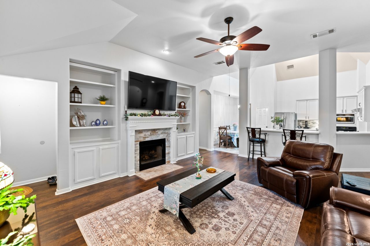 Updated, tons of space, no HOA, and a location that puts you close to schools, shopping, downtown New Braunfels, parks, and miles of scenic hike-and-bike trails. Walk out your backdoor to the hiking and biking trail that connect you to Fischer Park! This house is on an oversized lot in an established neighborhood just minutes from historic downtown New Braunfels, offering a sense of space and privacy thats hard to find this close to town. Its a setting that feels calm and comfortable, with plenty of room to enjoy the outdoors. The 1.5-story layout lives like a true one-story, with all bedrooms and main living spaces downstairs and a bonus room upstairs that easily adapts to whatever life needs next, game room, second living area, hobby space, or a quiet retreat. On the main floor a formal dining room offers space for hosting, while the large kitchen is filled with natural light thanks to overhead skylights. The family room features high ceilings, walls of windows, built-in bookcases, and a fireplace that anchors the space and makes it easy to picture relaxed nights at home. Recent updates include new HVAC 2023, all new windows, plantation shutters, corian countertops in the kitchen, fresh paint throughout, new light fixtures, vinyl plank flooring, new carpet, and a backyard pool built by Gary Pools, ready for long Texas summers and weekend get-togethers. The split-bedroom layout offers privacy, with a fourth bedroom that works just as well as a home office. The primary suite is tucked away at the back of the home and features a separate shower and garden tub, creating a comfortable space to get your day started. Step outside and youll see how much flexibility this property offers. A large, covered deck (20x40) overlooks the backyard and pool area, while two storage sheds with electricity have an RV hookup, The backyard is oversized and you could store your RV, boat or other toys in it. An oversized three-car garage adds even more room for storage, projects, or extra vehicles. Its a home that offers space, flexibility, and a lifestyle that feels easy both inside and out.