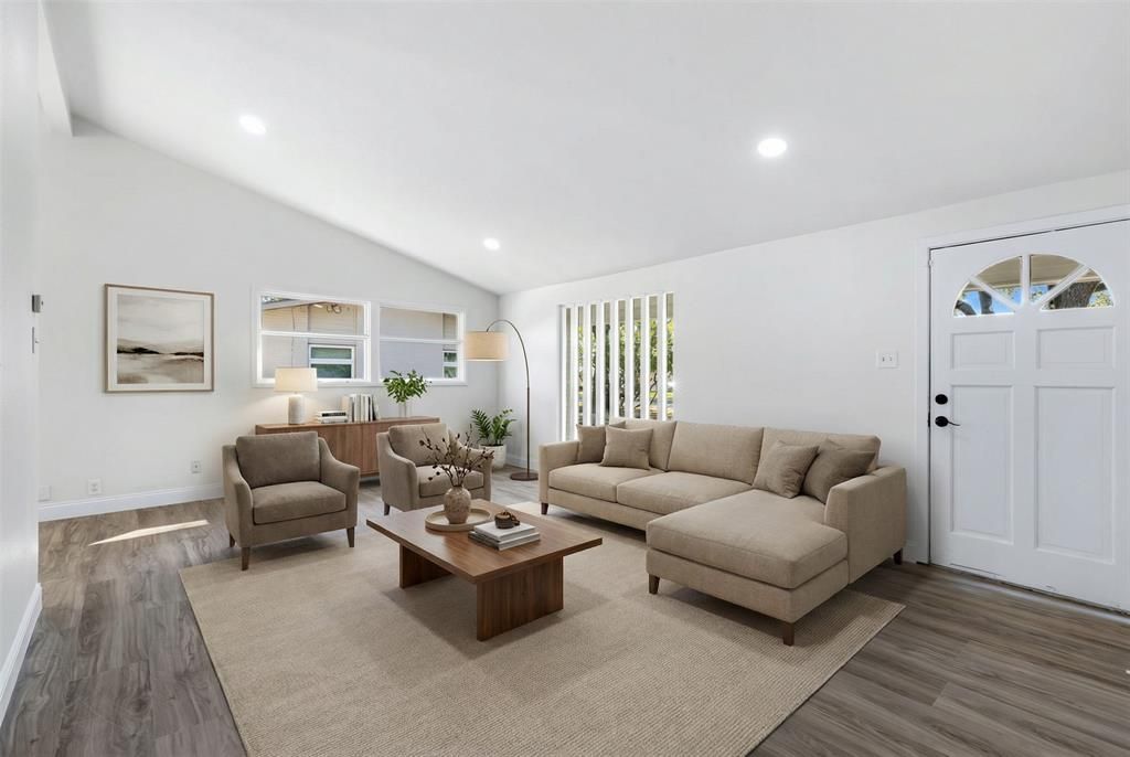 Welcome to this beautifully updated home in the highly sought-after West Richardson neighborhood. Enjoy an open concept living and dining area with vaulted ceilings, recessed lighting, and luxury vinyl plank flooring throughout. The updated kitchen features white cabinetry, subway tile backsplash, and a breakfast bar pass-through. The spacious primary bedroom offers great natural light and a stylish sliding barn door, which gives entry to a generous master bathroom. Move-in ready. Don't miss it!